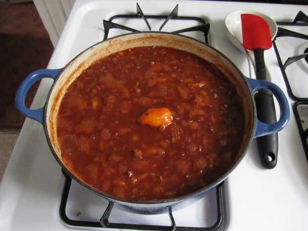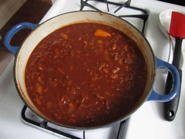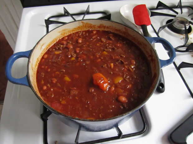 Traer el Chile hasta hervir durante cinco minutos o menos y luego bajar a fuego lento.