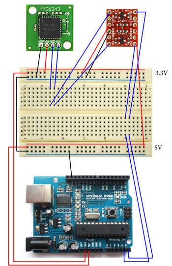 Conectar el sensor de 3 ejes para el convertidor de nivel de lógica: