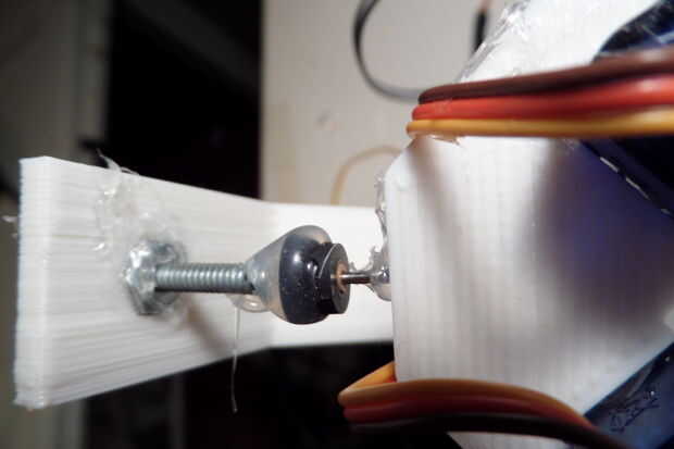 Poner un poco de pegamento en el cristal, entonces la ayuda del pegamento. Solidificar los barriles. Un cuerno del servo en el lado del pegamento.