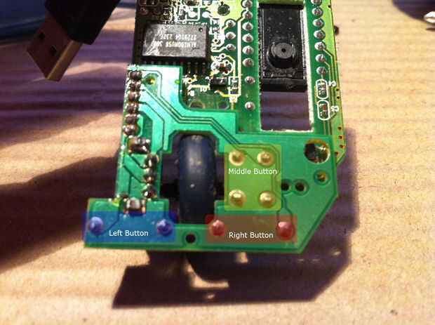 Aquí, he decidido soldar directamente, para poder reutilizar el ratón más adelante.