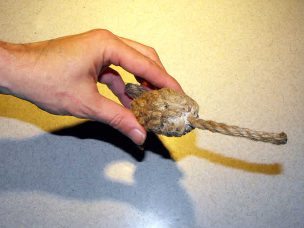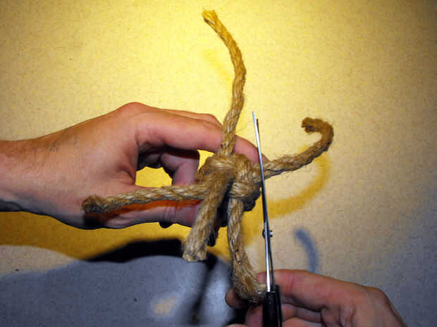 basado en mi ratón con nudos instructivo original para gatos buena esta versión de video utiliza 3/8" cuerda de nylon, produciendo un mayor ratón acabado más colorido.Cortar dos 4' longitudes de cuerdaCortar un 3' longitud de la cuerdaCruzar las dos