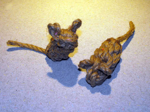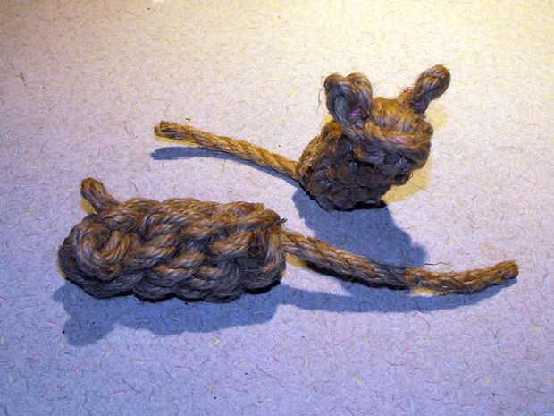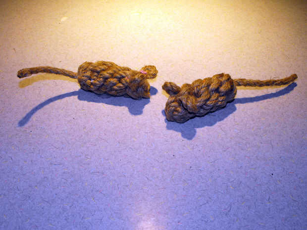 he hecho algunos de estos ratones para todos los gatos en mi vida. Son gato-probado y aprobados!Estos puede hacer con cualquier hilo de desecho (esto era algunos restos León marca lana) tamaño 8 dpns y un patrón de la puntada y puta nación.