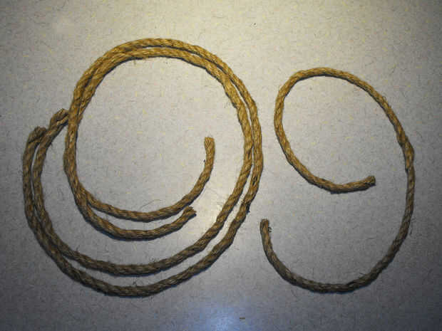 basado en mi ratón con nudos instructivo original para gatos buena esta versión de video utiliza 3/8" cuerda de nylon, produciendo un mayor ratón acabado más colorido.Cortar dos 4' longitudes de cuerdaCortar un 3' longitud de la cuerdaCruzar las dos
