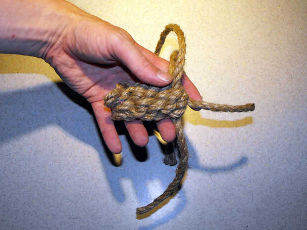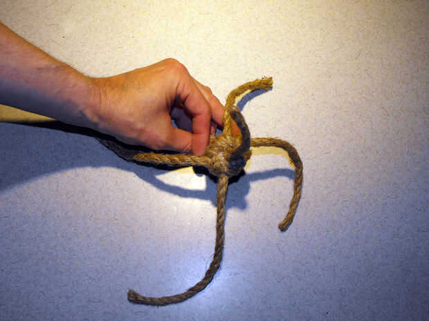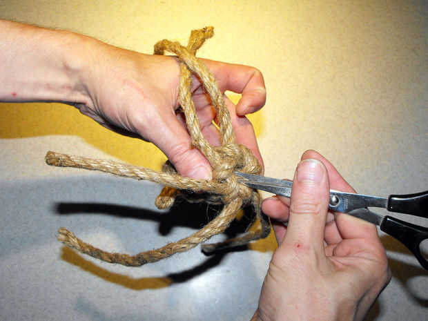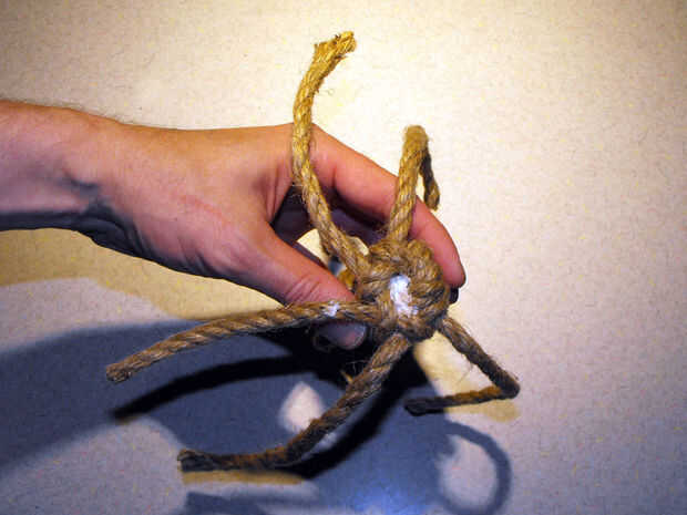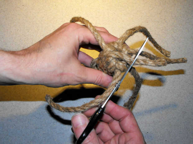 basado en mi ratón con nudos instructivo original para gatos buena esta versión de video utiliza 3/8" cuerda de nylon, produciendo un mayor ratón acabado más colorido.Cortar dos 4' longitudes de cuerdaCortar un 3' longitud de la cuerdaCruzar las dos