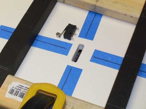 Foto 1: con el interruptor situado en la profundidad correcta en este material, tapas de agujeros de montaje de interruptores se alineen con la superficie inferior del tablero de pie.