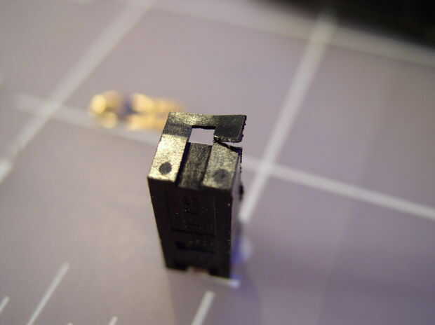 Para abrir la tapa, use un pequeño destornillador plano para sacar suavemente la tapa de la caja de la traba. Esto permitirá que la tapa se levante ligeramente hasta que usted puede hacer lo mismo a la parte trasera. Ser cuidado de no quitar demasiado lejos o difícil ya que podría dañar la cubierta. La primera vez que realiza esta reparación, dañan la cubierta en la mía, pero afortunadamente aún permanece en su lugar, así que no había ningún daño real.