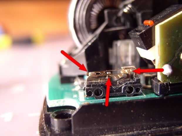 Para volver a instalar el resorte de tensión, primero adjuntarlo al gancho pequeño en la parte delantera del mecanismo, como se muestra en la imagen. Entonces utilice el destornillador de cabeza plana para empujar la pestaña curva en su lugar manteniendo la parte posterior de la primavera bajo el brazo pequeño en la parte trasera del mecanismo. La segunda imagen muestra lo que debe después de ser reinstalado. Observe las flechas apuntando a los puntos que necesitan más atención. Usted quiere los tres es correcto o el mecanismo no funciona debidamente.