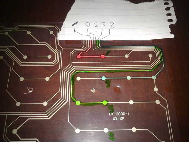 Después de encontrar las claves que necesita para que otro contacto que se conectan, esto se hace simplemente usando un marcador permanente para trazar las pistas en la otra mitad de la matriz clave (imagen 7)