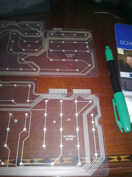 Quitar la parte de atrás debe revelar algo como la imagen 3, es decir, una matriz clave plástico y una pequeña placa de circuito