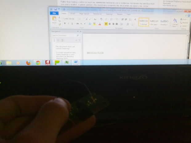 Los contactos de prueba enchufar la tarjeta de circuitos de una computadora y usando un pedazo de alambre para puntear los contactos. Todo va bien esas teclas aparece en el ordenador (imagen 2)