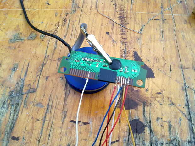 Por primera vez en esta versión del controlador está preparado para interactuar con un ordenador. Poner cada uno de los cables en los pines correspondientes a su pin diagrama y conecte el circuito en un ordenador (imagen 4). Ahora cuando usted mueve la palanca de mando debe tener los números aparecen en el equipo. Si no volver atrás y comprobar sus empalmes de la soldadura y perno diagrama