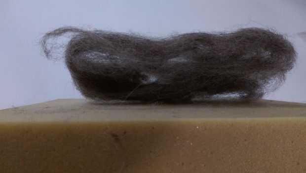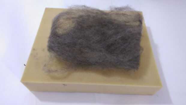 Tirar de una sección de la lana fuera de su fuente y capa de aproximadamente 3 veces. Cuanto mayor sea la cantidad de lana que comienzas con, mayor será su resultado final. Tenga en cuenta que como agujado que su forma reducirá gradualmente para arriba como las fibras se entrelazan.