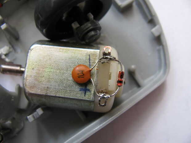 La soldadura del condensador cerámico 100nF a los conectores de motor. (Protección del ruido)