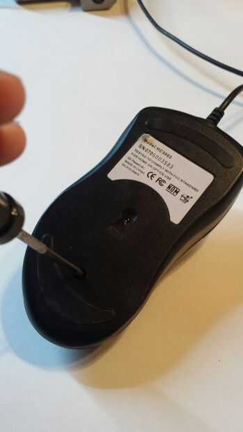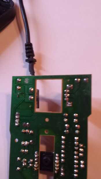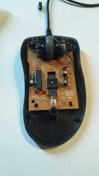 Primero abra ratón stock y localizar el circuito. Para mi mouse era fácil sólo tuvo que quitar un tornillo y se encontró con una sola tarjeta con un montón de espacio para colocar un circuito. encontrar sus dos botones de ratón y determinar si van a tierra o a vcc. En mi caso fueron a vcc.
