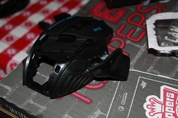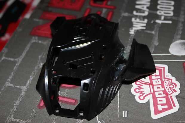 La cubierta superior, botones derecho e izquierdo del ratón y panel central un seguimiento de lijado y luego limpiar con alcohol isopropílico.