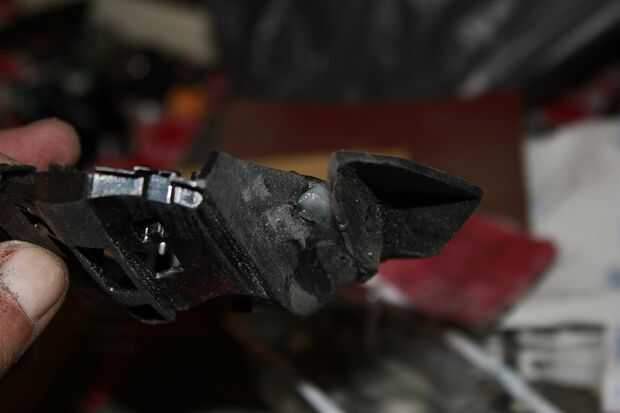 7. mezclar su enlace plástico epoxi en pequeños lotes. Como el doble del tamaño de un guisante. Usted sólo podrá aplicar una pequeña cantidad y luego tienes que esperar a que cure antes de añadir más. Una vez tuve dos puntos del epoxy en su lugar que tomé hacia fuera el pegamento caliente. Un pico de metal afilado hizo bien el trabajo. Una vez que el pegamento caliente de la Unión continúan aplicar el epoxi hasta el conjunto completo. Asegúrese de aplicar solo un poco más que se necesita para llenarlo. Esto puede ser lijar una vez que establece. En este paso, tómese su tiempo. Esto debe ser un matrimonio en la mano y lo utilizas más que cualquier otra parte de su máquina. Me tomó 3 horas completas a la articulación de la forma exactamente lo que quería. En esto también afeitado un poco la parte superior del patín para agregar comodidad a la posición del dedo anular.