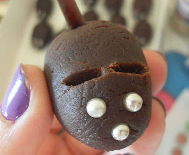 • Añadir 3 confeti de azúcar comestibles para los ojos y la nariz