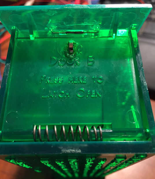 La trampa ahora actúa como un interruptor que se abre cuando armados y cierra el circuito cuando una mala suerte (pero más afortunada que las dos últimas) mouse entra en la trampa y la puerta se cierra.