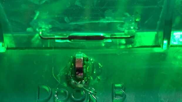 Usando un interruptor normalmente abierto y un imán pequeño puede hacer que el interruptor de láminas cerrar el circuito cuando se cierra la puerta de la trampa.