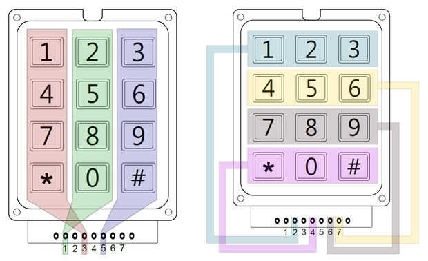 Si no entendemos cómo funcionaba el teclado, sería muy confuso. Básicamente, en lugar de tener 12 pines separados para cada tecla, un teclado de tipo de matriz utiliza un arry dimensional 2 para describir cualquier movimiento número dado. Por ejemplo, accidente cerebrovascular número '5' es una combinación de la columna 2 (Pin 7) y la fila 2 (Pin 1). Cuando Arduino recibe una señal simultánea de pin 7 y el pin 1 que deduce que ha sido presionada esa tecla 5. ¿Inteligente EH?