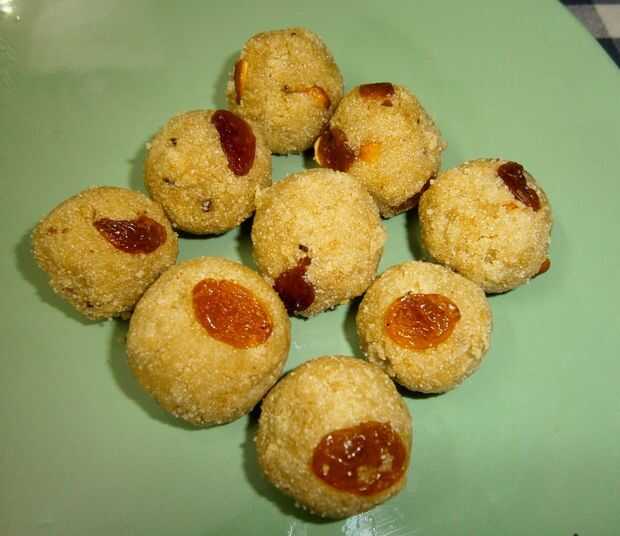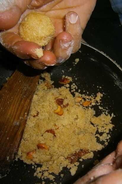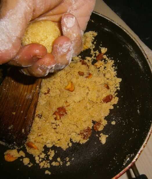 Nota: Si usted no puede rodar y la mezcla está demasiado seca, espolvorear más leche o añadirle más ghee caliente y hacer bolas otra vez.