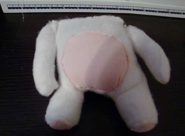 almohada de piel sintética verde con cara de Raving Rabbids! Había utilizado fieltro para ojos y boca.