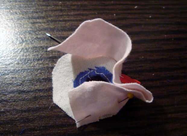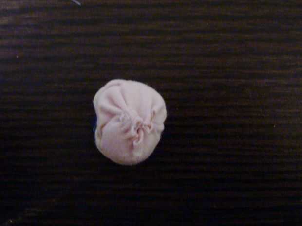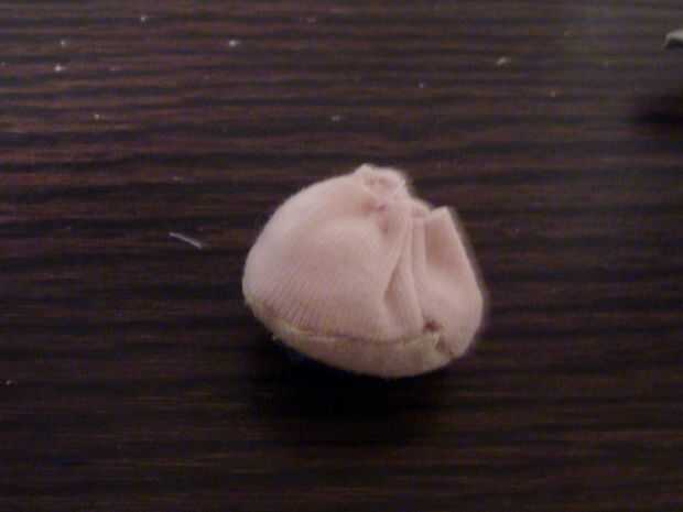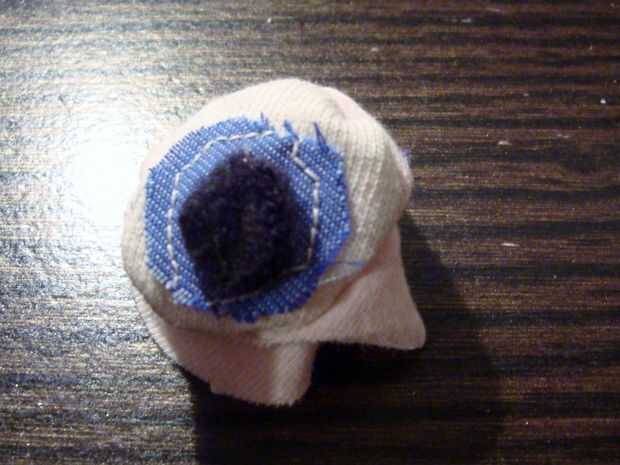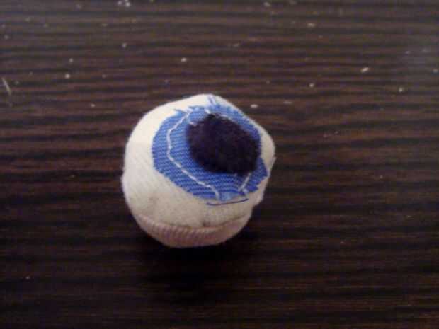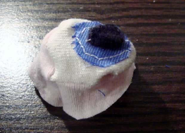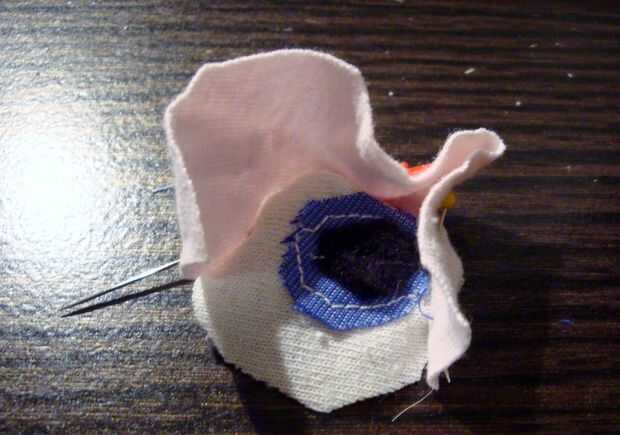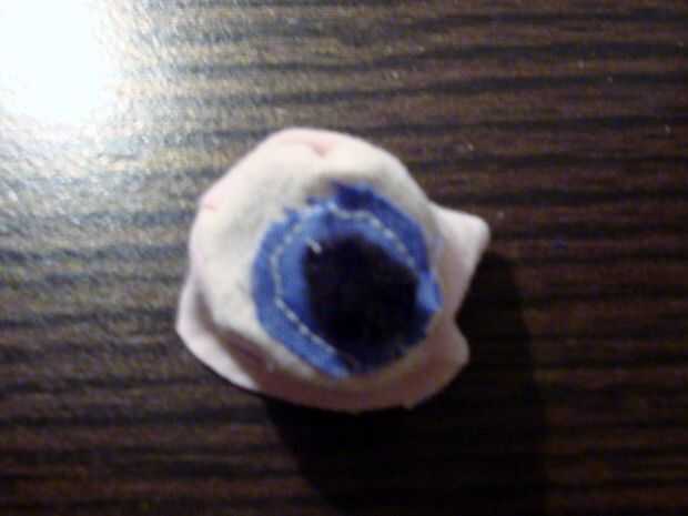 El borde mayor de los párpados a los bordes del ojo del perno. El párpado se va todo el camino alrededor del ojo. No es completamente fijado en las fotos. Coser alrededor de los bordes. Coser los extremos del párpado junto en el interior. Girar el ojo hacia fuera. Ponga un poco de relleno en el ojo y la mano coser los párpados juntos en la parte posterior.