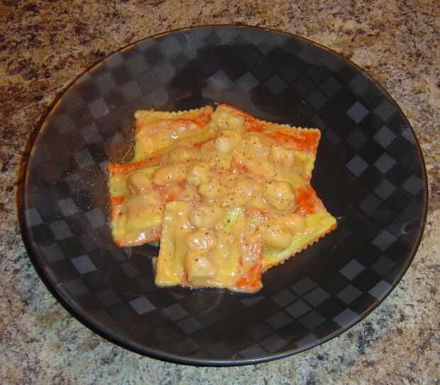 Mi novio ama ravioli de langosta con salsa de crema de langosta. Cuando lo consigamos en un restaurante, que cuesta $20 más o menos una persona, por lo que es muy caro para comer regularmente. Pero con esta receta puede servir dos para pozo debajo de eso. Pensé en un día cuando estaba comprando crema de langosta en trader joes y ' espera un minuto: salsa de crema de langosta es básicamente crema de langosta a grueso. ¡ Ajá!'.
