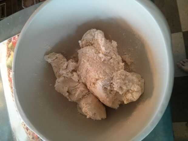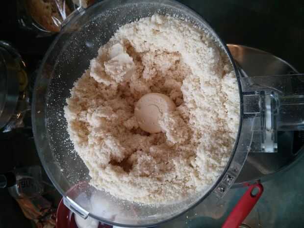 Mezclé mi masa en lotes más pequeños como mi procesador de alimentos no se sostendría todo. Puse 1/3 de todos los ingredientes (excepto el agua) y blitzed para arriba. la masa debería verse como arena húmeda. Si parece demasiado seco ad un poco muy poco de agua tibia en un momento hasta que es todavía más bien secos pero se pega al.
