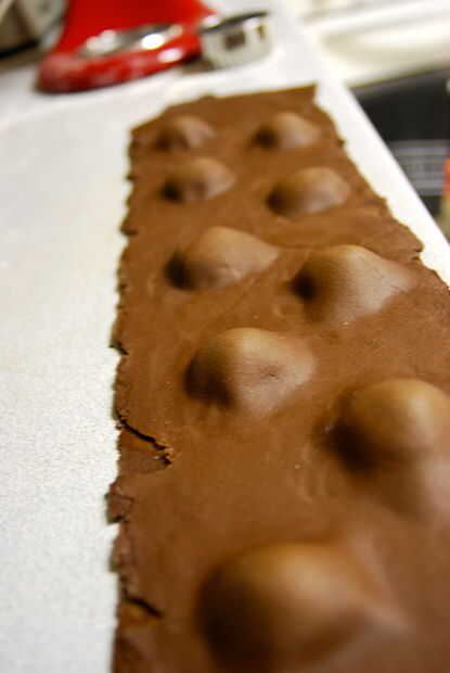 • Utilizando un pincel de repostería, Esparza una pequeña cantidad de lavado de huevo alrededor de cada montículo de relleno – esto ayudará a la pasta para sellar durante la primera cocción de la etapa y evitar fugas durante la segunda cocción.