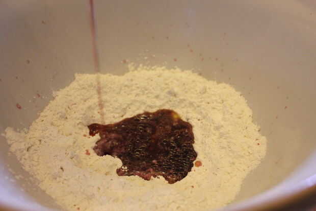 vino 100ml - Si utilizas Merlot como lo hice - se obtiene una pasta púrpura loco, que cocina en un agradable color castaño destacó rico - vea arriba.