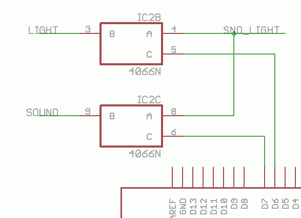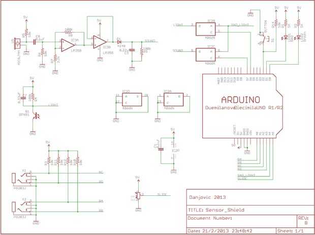 Para lograr el diseño de la cara solo que he comenzado por elegir el lugar de los conectores y los sensores de luz y sonidos. Luego la Asociación de los pines de Arduino con los sensores, así como las mitades de las mitades del OPAMP y las puertas de los interruptores analógicos fueron experimentados hasta que las líneas de 'ratsnet' mostraron aa poco limpiamos. Al final el resultado se logró con sólo 2 puentes.