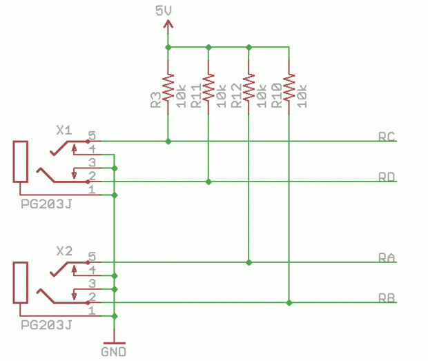 Para lograrlo, la solución encontrada fue implementar un multiplex con un 4066 que es un conmutador analógico bidireccional quad CMOS. Uno a la vez que cada interruptor se activa y el correspondiente canal de ADC se lee.