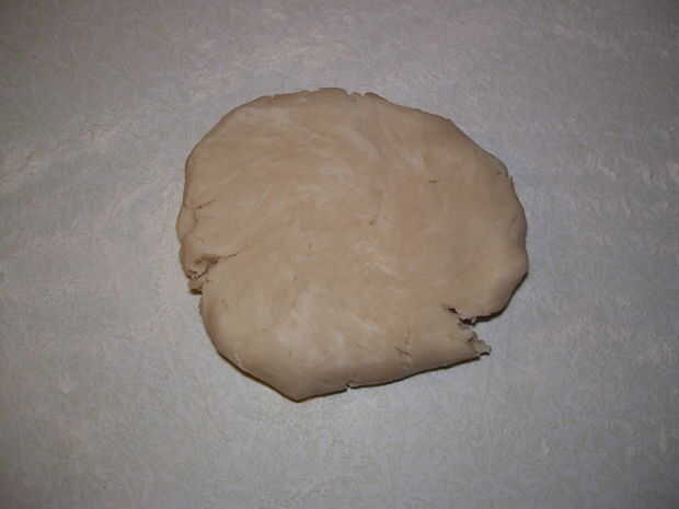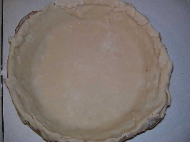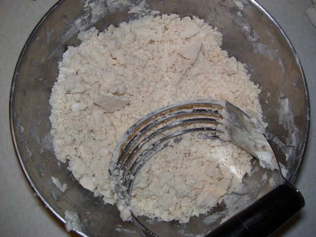 Mezcla 1 1/3 tazas de harina con 1/2 taza de crisco y 1/2 cucharadita de sal hasta que forme grumos del tamaño de guisante. Añadir 3 cucharadas agua helada y recoger la masa con un tenedor.