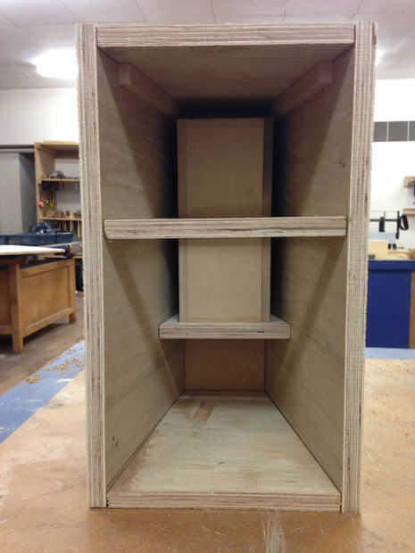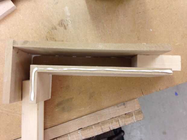 - trozo pequeño de pegamento las tiras de madera 15mm desde la parte superior de cada pared lateral del gabinete, esto es para apoyar la parte superior y pegar