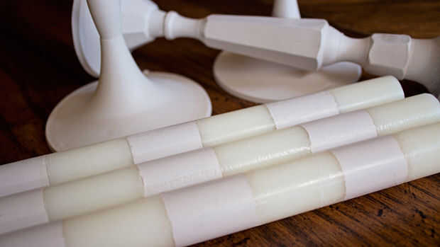 Ataviar encima de un antiguo conjunto de candeleros con pintura en aerosol y crear rayas candelabros para que coincida con.