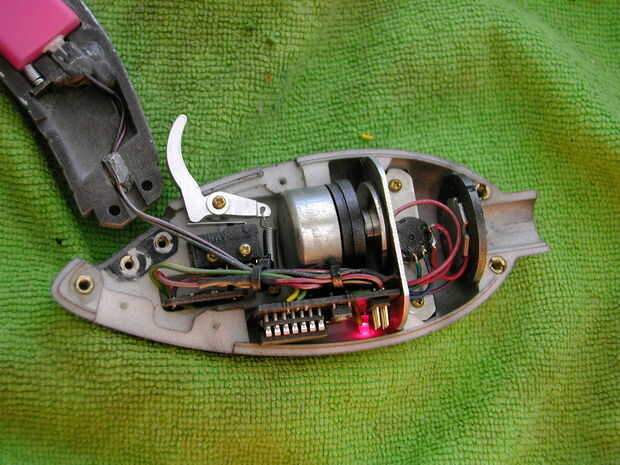 Que este último resultó difícil. Yo corría software PWM para LED (no había más temporizadores de hardware disponible en ese chip), tuve que tomar lecturas de gatillo y lecturas analógicas de la esfera, y las clases de sonidos quería necesitan evolucionar con el tiempo. Entonces dio para arriba en la tabla de la onda completa y genera ondas diente de sierra o cuadradas simple. Y eso significaba que podía repuesto de los ciclos de programa para sumar o restar números a la frecuencia (es decir, la tasa base que los cambios se hacen a la salida analógica solicitada de timer1.)