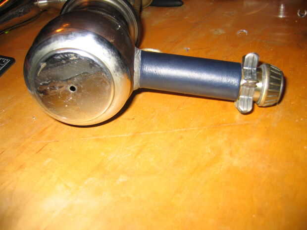 He medido hacia fuera y corte un orificio en el cuerpo que era sólo lo suficientemente grande como para que el mango y luego une con metal epoxi de dos partes. Es ese tipo de cosas que viene en un tubo, que gris en el exterior y gris oscuro en el centro. Usted puede rodarla y envuélvalo alrededor, luego cuando se seca se puede lijarlo y todo tipo de cosas. Lo siento no recuerdo el nombre, los venden en Home Depot y Autozone para la fijación de radiadores.