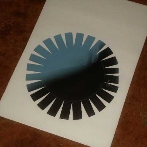 Hubiera sido un poco más fácil con más fichas en la "sunburst", porque el material tiende a luchar va donde usted quiere que vaya más adelante, y ya son mejor que demasiado poco. Estos cortan un poco cerca, pero funcionó. Tuve una película más grande para cortar para el segundo tambor lengüetas más cabeza e izquierdas.