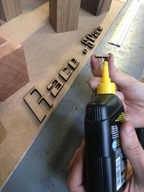 El láser de corte de letras en el tablero utilizando el 100% del pegamento pegamento