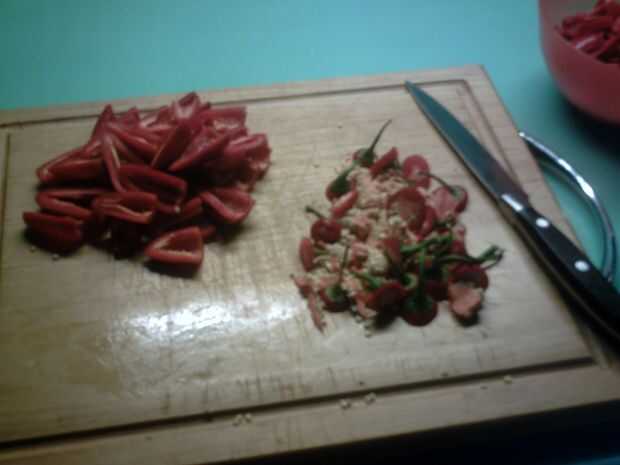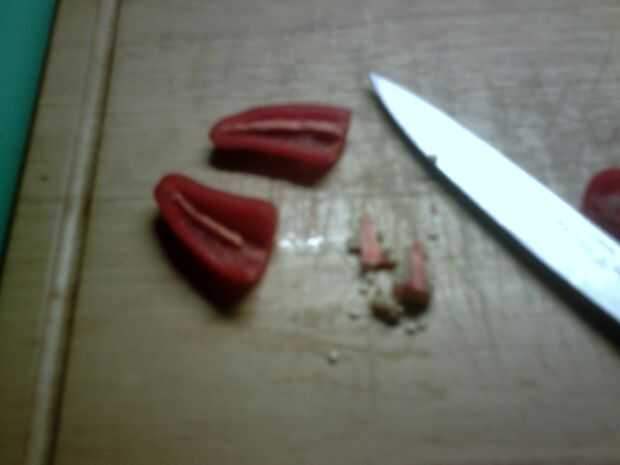Lavado tus chiles luego cortados el extremo del tallo, cortarlas en formas de media longitud y deshacerse de tantas semillas como sea posible, oh y asegúrese de que usted Lave sus manos después de salas.