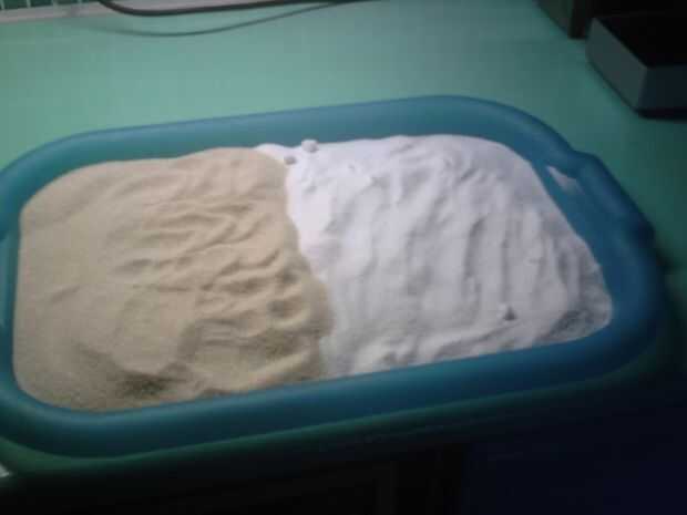 Poner suficiente azúcar y sal para cubrir los chiles en su bandeja y mezclar bien.
