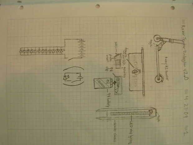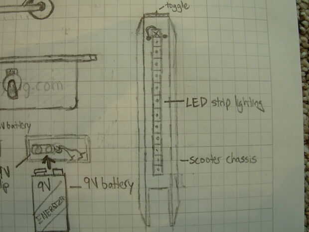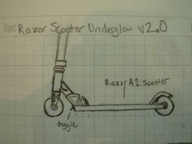En un futuro próximo, espero modificar otro scooter de Razor. En vez de alambre, contará con adhesivo tiras de LEDs en la parte inferior de la cubierta. Un conmutador de encendido y apagado irá en un inserto plástico nuevo, hueco en el frente de la cubierta. Dentro de la parte hueca del inserto, se pegue un clip de 9V en lugar, para que pueda ocultar la batería y cambiar hacia fuera rápidamente. Creo que mi nueva versión será mucho más limpio, más simple, más robusto y más fácil de mantener. Por favor, comentario, tasa, y