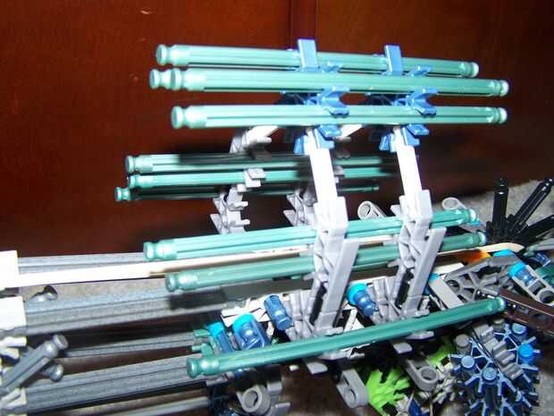 K'nex de una banda de caucho pistola con revista cargar sistema.  Revistas pueden ser de muchas longitudes diferentes para propósitos diferentes.  Aunque sean como barriles intercambiables, pedirá los compartimientos.Pros:-Semi-automatica-Compartimie