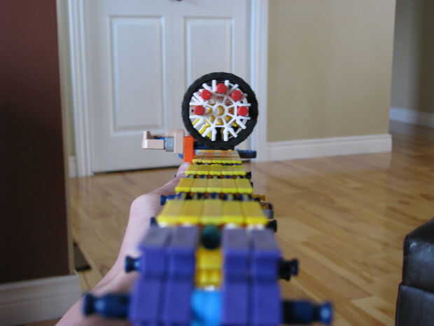 esto no es una copia de la pistola de pistolero de k'nex. es una actualización. Es más potente y precisa, nuevo diseño de la manija y mucho más fácil sacar el percutor hacia atrás! Y el gatillo hace clic automáticamente en su lugar cuando usted tire