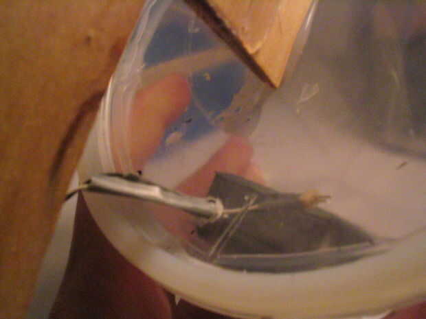 Ahora, perfore un agujero en la parte inferior de la espalda para el cable del motor.