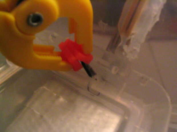 1. Ponga el motor a través del orificio que ha perforado anteriormente. (Use pinzas para ayudar a)