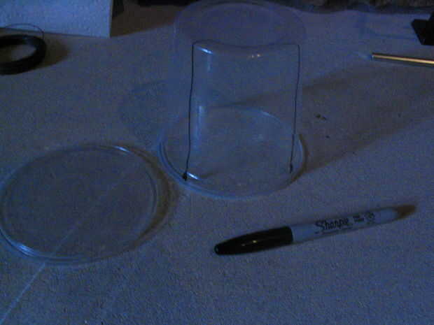 En primer lugar, supongo que alrededor de un cuarto de circunferencia de la taza, luego cortarlo, pero no cortar la tapa!!!