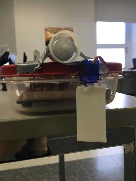 Ahora habla de nuestro proyecto. Nuestro proyecto consiste en un barco RC básico. Hay motor y un servo, que trabaja con lo que llamamos un "Arduino". Han sido programados como hubiéramos querido (velocidad, saltos, etc. El motor es un propulsor de impresión 3D y al servo es extensión 3D impreso servo. La hélice hace que el barco se mueven con la fuerza del viento y la extensión de servo controla la dirección del barco. El cuerpo del barco iba a ser 3d impreso pero la impresión no muchas veces así que tuvimos que tomar un frasco de Ziplock. Fue lo mejor que podríamos hacer para replicar el cuerpo impreso 3D ya que no tenemos muchos más tiempo.