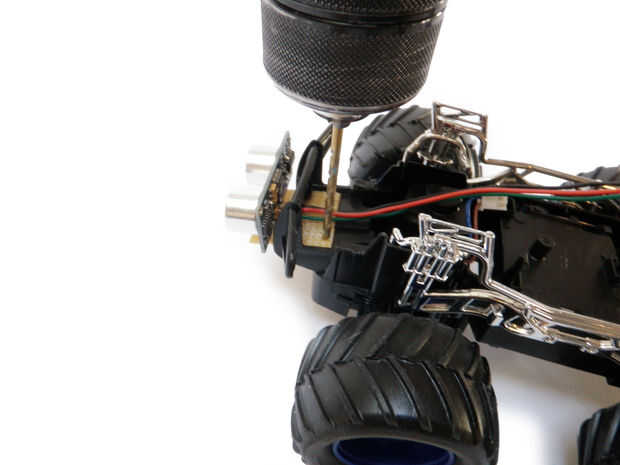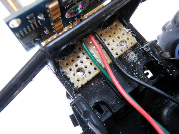Taladrar un agujero de 1/8 a cada lado de la placa de circuito y asegure con firmeza que el cuerpo del coche RC con ataduras de cremallera.